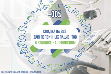 ![]() В октябре также будет действовать скидка 30% на Ленинском ТОЛЬКО для ПЕРВИЧНЫХ пациентов. Все лечение для пациентов, пришедших в октябре впервые, будет со скидкой 30% до конца месяца.